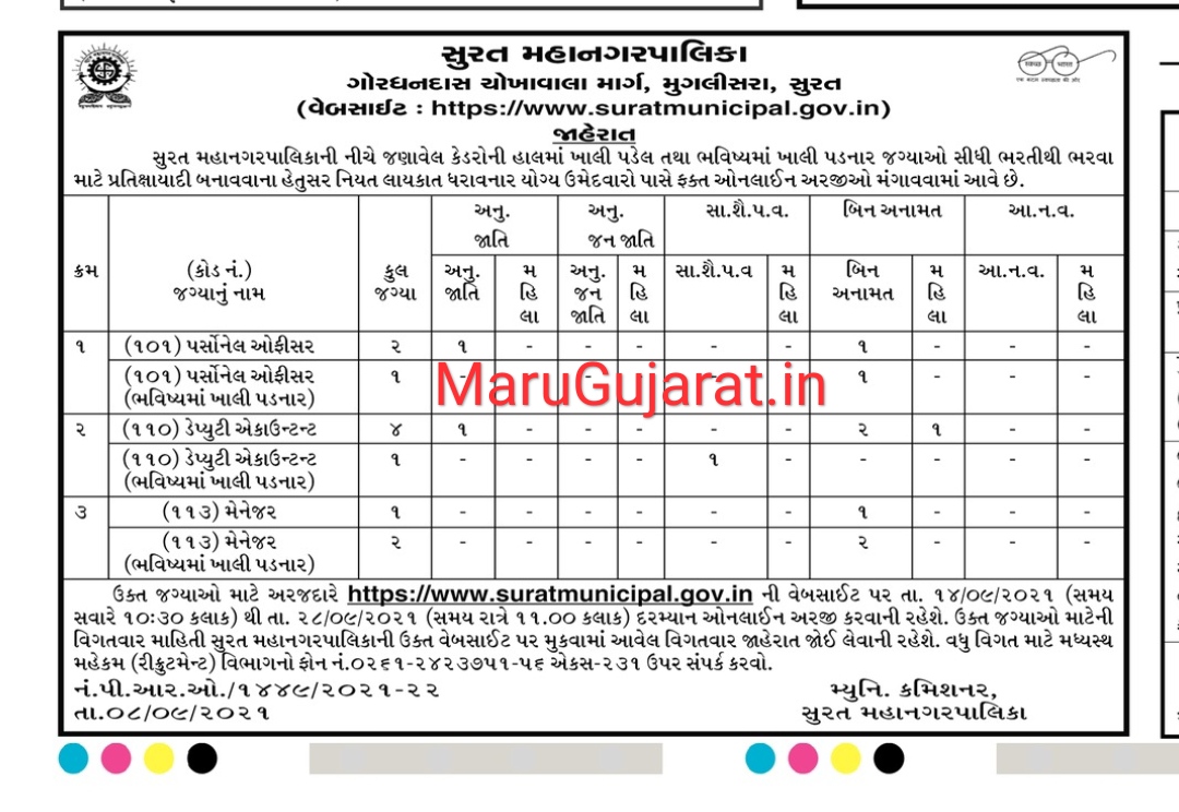 Surat Municipal Corporation is the local civic body responsible for the administration of Surat, Gujarat which has come into being under the Bombay Provincial Municipal Act, 1949. The Surat Municipal Corporation was established on 2 October 1966. It carries out all the obligatory functions and discretionary functions entrusted by the BPMC Act,1949 with the following mission. Surat Municipal Corporation area 472 sq km. Population 61,76,000 (2020) in Surat city.Surat Municipal Corporation (SMC) has published an Advertisement for the below-mentioned Posts. Eligible Candidates advised to refer to the official advertisement and apply for this post. You can find other details like age limit, educational qualification, selection process, application fee, and how to apply are given below.